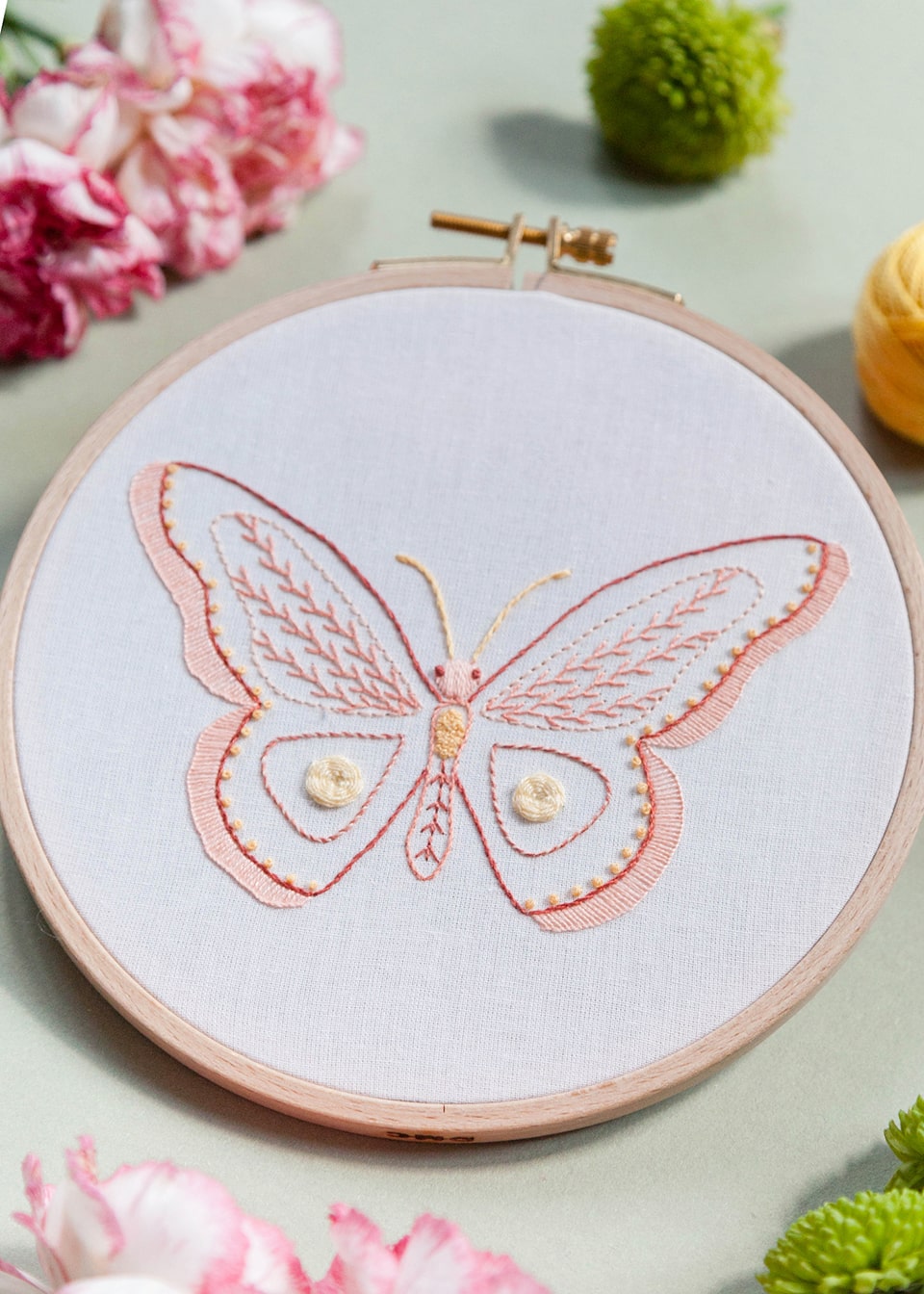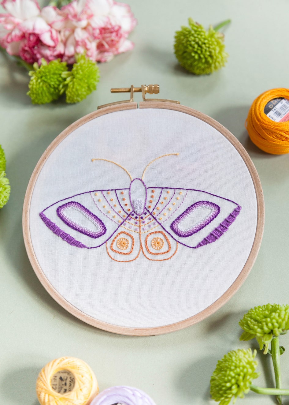 Leire me propuso colaborar con ella y Labores del Hogar con unos patrones y unos bordados. El mundo de los insectos me apasiona, así que me puse manos a la obra y diseñé y bordé una mariposa y una polilla con puntos de principiantes para un nivel inicial de bordado. El resultado es sencillo pero delicado y no puede gustarme más.